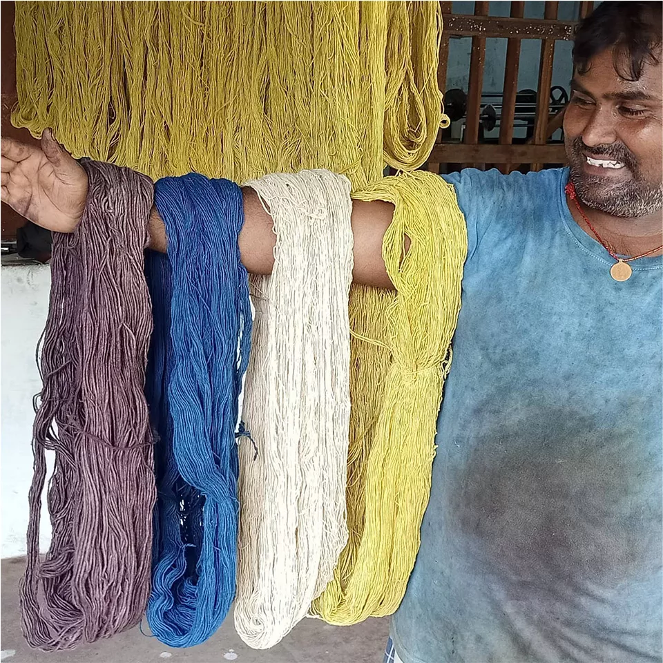 Roots & Bark – Madder root (red), Turmeric root (yellow), Arjuna bark (brown)